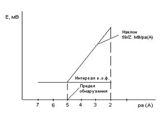 Рис. 2 Определение интервала выполнения электродной функции по графику зависимости Е = f(ра(A)).