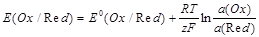 = 0,00 В. Очевидно, что в этом случае измеренная величина ЭДС гальванического элемента, в состав которого входит водородный электрод, равна разности внутренних потенциалов второго электрода. Эту ЭДС принято называть электродным потенциалом или редоксипотенциалом и обозначать буквой Е. Переход от внутренних потенциалов к редоксипотенциалам не меняет характера формулы Нернста: