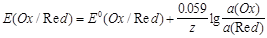 При нормальных условиях и переходе от натуральных к десятичным логарифмам предлогарифмический множитель становится равным 0,0591, и формула приобретает вид