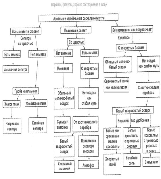 Схема качественного определения ионного состава минеральных удобрений (по О.С. Безугловой с дополнениями Петербургского).
