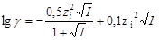 Значение коэффициента активности для различных электролитов при их различных концентрациях приведены в справочниках физико-химических величин, но могут быть и вычислены через ионную силу раствора I: