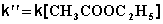 Если проводить эту реакцию при близких концентрациях этилацетата и воды, то общий порядок реакции равен двум и кинетическое уравнение имеет следующий вид: