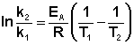 Зная энергию активации реакции и константу скорости при какой-либо температуре T1, по уравнению Аррениуса можно рассчитать величину константы скорости при любой температуре T2: