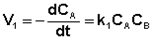 Общая скорость двусторонней реакции в любой момент времени равна разности скоростей прямой и обратной реакции: