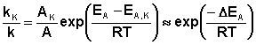 Если ΔEA = –50 кДж/моль, то отношение констант скоростей составит 2,7·106 раз (действительно, на практике такое уменьшение EA увеличивает скорость реакции приблизительно в 105 раз).