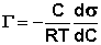 Количественной мерой адсорбции на границе раствор-пар является поверхностный избыток Г (гамма), равный числу молей растворенного вещества в поверхностном слое. Количественное соотношение между адсорбцией (поверхностным избытком) растворенного вещества и изменением поверхностного натяжения раствора с ростом концентрации раствора определяет изотерма адсорбции Гиббса: