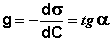 Величину g = –dσ/dС называют также поверхностной активностью растворенного вещества. Поверхностную активность ПАВ при некоторой концентрации С1 определяют графически, проводя касательную к изотерме поверхностного натяжения в точке С = С1; при этом поверхностная активность численно равна тангенсу угла наклона касательной к оси концентраций: