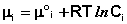 Химический потенциал компонента связан с его парциальным давлением или концентрацией следующими соотношениями: