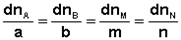 В закрытой системе изменение числа молей одного компонента сопровождается эквивалентным изменением числа молей остальных компонентов; т.е., для приведенной выше химической реакции имеет место соотношение: