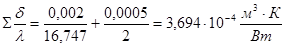 Примем, что суммарное термическое сопротивление равно термическому сопротивлению стенки dст/lст и накипи dн/lн (/lн=2Вт/мК). Термическое сопротивление загрязнений со стороны пара не учитываем.