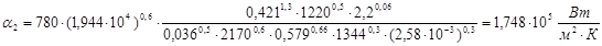 Коэффициент теплоотдачи от стенки к кипящему раствору для пузырькового кипения в вертикальных кипятильных трубках при условии естественной циркуляции раствора равен,