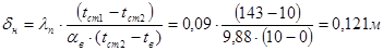 Толщину тепловой изоляции dн находят из равенства удельных тепловых потоков через слой изоляции от поверхности изоляции в окружающую среду: