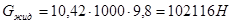 Принимаем плотность жидкости равной плотности воды. Находим Gжид: