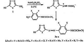 Некоторые новые гетероциклические моноазокрасители, синтезированные на основе 2-амино-5-меркапто – 1,3,4-тиадиазола с различными N-фенилакриламидными производными, используются для окрашивания полиэфирных тканей [12].