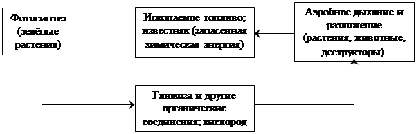 Основное звено большого круговорота углерода – взаимосвязь процессов фотосинтеза и аэробного дыхания (рис. 1).