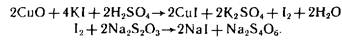 В прямом методе осадок Cu2O растворяют в растворе додекагидрата сульфата железа - аммония NH4Fe2 · 12Н20 в присутствии серной кислоты. При этом Cu+ окисляется в Cu2+, a Fe3+ восстанавливается в Fe2+ по уравнению