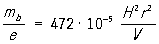 де mb - маса іона (в атомних одиницях маси), е - заряд іона (в одиницях елементарного електричного заряду), r - радіус центральної траєкторії іонів, Н - напруженість магнітного поля (в эрстедах), V -прикладена різниця потенціалів (у вольтах) за допомогою якої прискорені іони в іонному джерелі (прискорюючий потенціал).