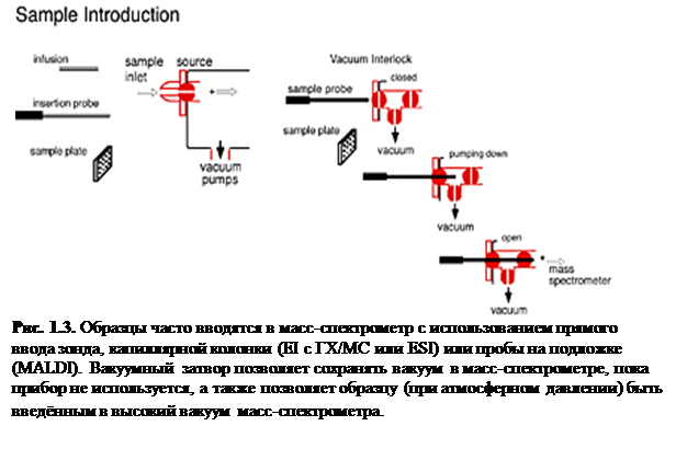 зонда или подложки, обычно используемое в MALDI-MS, или прямое вливание или впрыскивание в устройство ионизации, как в методе ESI-MS. [1]
