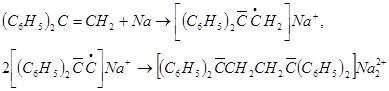 Своеобразным типом натрийорганические соединения. являются ионнопостроенные продукты присоединения натрия к ароматическим углеводородам, образующиеся в среде некоторых простых эфиров (лучшая среда — диметоксиэтан). Сильно крашенные растворы этих соединений электропроводны и парамагнитны в них присутствуют солъватированные растворителем катионы металла и анион-радикалы углеводорода, например