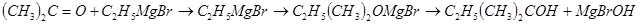 Взаимодействием магнийгалогеналкилов с кетонами получают третичные спирты: