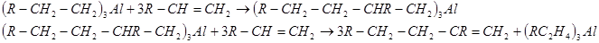 С и выше) триалкилалюминий реагирует с олефинами иначе. В зависимости от условии реакции образуются димеры или полимеры, триалкилалюминий регенерируется, играя роль катализатора: