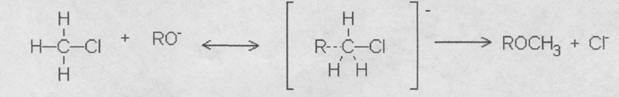 Скорость реакции, протекающей через переходное состояние, пропорциональна концентрации каждого из реагентов. Следует полагать, что и реакция целлюлозы с хлористым метилом происходит по указанной выше схеме, т. е. является бимолекулярной реакцией нуклеофильного замещения –SN2.