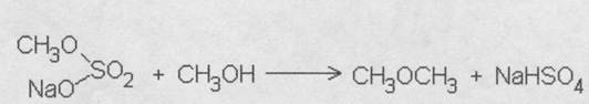 Образующаяся при главной реакции метилсерная кислота может реагировать с метиловым спиртом, давая диметиловый эфир и в присутствии избытка щелочи сульфат Nа: