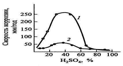 Рисунок - Зависимость скорости коррозии стали в растворах H2SO4: