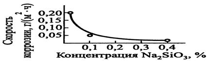 Рисунок - Зависимость скорости коррозии стали в нейтральных водных растворах от концентрации Na2 Si O3