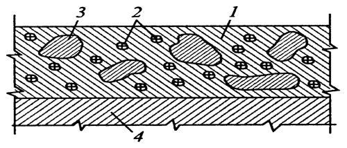 1 — пленкообразователь; 2 — наполнитель; 3 — пигмент; 4 — металл