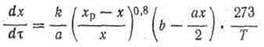 где х — степень превращения, доли ед.; т —время контакта, с; k — константа скорости реакции, с-1 • см2/кгс;. а, b — начальные концентрации сернистого ангидрида и кислорода, соответственно, объемн. %; xp — равновесная степень превращения доли ед.; Т— температура, К.