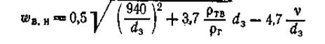 Общей формулой для расчета широкого диапазона скоростей (в м/с) является та, в которой истинная скорость в начале взвешивания wB.B= wB/e0 (e0 —порозность слоя) составляет: