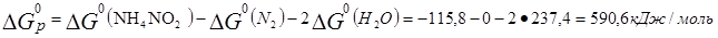 Определить изменение изобарно-изотермического потенциала реакции N2(г) + 2Н2О(ж) = NH4NO2 (ж) и дать заключение о направлении ее протекания при стандартных условиях, если