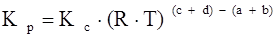 Если компоненты реакции представляют собой смесь идеальных газов, то константа равновесия (Кр) выражается через парциальные давления компонентов:
