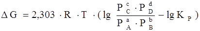 где Р А, Р В, Р С, Р D – парциальные давления исходных веществ и продуктов реакции.