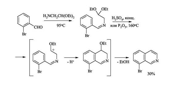 Этот способ удачно дополняет два рассмотренных ранее метода синтеза изохинолинов, поскольку при его применении образуются замещённые изохинолины, которые не удаётся синтезировать другими путями. При замене ароматических альдегидов кетонами процесс протекает менее гладко.