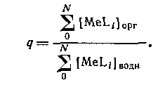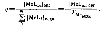 В большинстве случаев анионные комплексы не экстрагируются, так что вид кривой распределения комплекса от концентрации лиганда будет разным в зависимости от того, образуется ли в системе анионный комплекс или нет. Коэффициент распределения представляет собой отношение общей концентрации металлсодержащих частиц в обеих фазах: