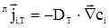 Турбулентный перенос массы можно рассматривать по аналогии с молекулярным как следствие хаотического перемещения вихрей. Вводится коэффициент турбулентной диффузии DT, зависящий как от свойств среды, так и от неоднородности скорости и удаленности от межфазной поверхности. При турбулентном движении, суммарный поток вещества относительно лабораторной системы, отсчета может быть записан