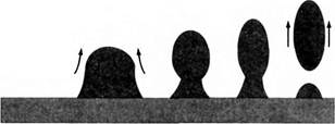 Рис. 1. Удаление масляного загрязнения с твердой поверхности по механизму «скатывания»