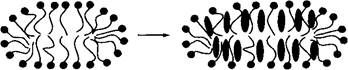Рис. 5. Масла, не проникающие между углеводородными фрагментами ПАВ, приводят к образованию более сферических мицелл