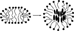Рис. 4. Масла, проникающие в углеводородный слой ПАВ, приводят к образованию удлиненных мицелл