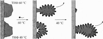 Рис. 11. Удаление пятен двух загрязнений с различными температурами инверсии фаз