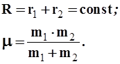 1. В первом случае представим себе вращательное движение двухатомной молекулы вокруг её центра масс. Пренебрегая относительно небольшими колебательными деформациями химической связи, можно считать постоянным межъядерное расстояние R, а соответственно, и радиусы сфер, по которым перемещается каждый из атомов вращающейся молекулы с массами