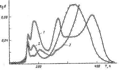 Суммируя приведенные экспериментальные результаты, можно заключить, что в ненаполненных и наполненных сшитых кремнийорганических каучуках, выдержанных предварительно при 470 К или свежеприготовленных, наблюдаются области характерного изменения tg б и ε', отвечающие стеклованию, кристаллизации и плавлению. При наличии в наполненных сшитых каучуках сорбированной влаги происходят характерные переходы в областях 190-220, 255-275 и 370-410 К.