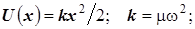 Около минимума вблизи R0 адиабатический потенциал – энергетическую кривую можно аппроксимировать параболой. Периодически меняющееся смещение равно x=R-R0. Движение ядер с параболическим потенциалом – гармоническое колебание. Его законы, полученные в классической физике, в основном справедливы и в квантовой механике. Справедливы известные соотношения. Потенциальная энергия и силовая константа равны