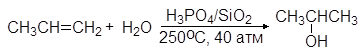 Кислотно-катализируемая гидратация алкенов лежит в основе промышленного способа получения этанола из этилена и 2-пропанола из пропена. Этиловый и изопропиловый спирты для технических целей получают, в основном, гидратацией этилена и пропилена в паровой фазе: