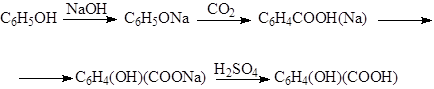 Салициловую кислоту получают в очень больших количествах, действуя углекислым газом на фенолят натрия при нагревании под давлением, образующуюся натриевую соль переводят с помощью серной кислоты в салициловую кислоту.