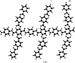 d ~ 3.75 А соответствует расстоянию между идентичными слоями, и его величина определяется толщиной бензольных колец основных цепей и боковых ответвлений с учетом некоторого их отклонения от единой плоскости. Из фрагментов цепей можно в соответствии с полученными структурными данными построить кристаллическую решетку полимера (рис. 36, Зв). Плотность такой упаковки составляет 1.43 г/см3, а макроскопическая плотность таблетки, определенная методом пикнометрического титрования -1.320 г/см3.