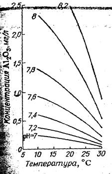 Растворимость гидроксида железа (II) в воде приведена на рис. 1, из которого видно, что этот коагулянт может применяться при рН > 9–10. Для уменьшения концентрации растворенного гидроксида железа (II) при более низких величинах рН производят окисление двухвалентного железа в трехвалентное. Процесс окисления осуществлять за счет растворенного в воде кислорода: 4FeSO4 + O2 + 2H2O = 4Fe(OH)3.
