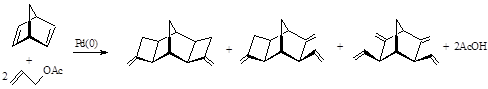 Малоизученна возможность проведения каталитического аллилирования НБД и НБН – производных при использовании в качестве катализаторов не только комплексов никеля, но и комплексов других переходных металлов. В частности, комплексов переходных металлов Pt, Co, Rh. Следует отметить, что в последнее время большое внимание уделяется возможности использования в данной реакции каталитических систем на основе комплексов Pd.